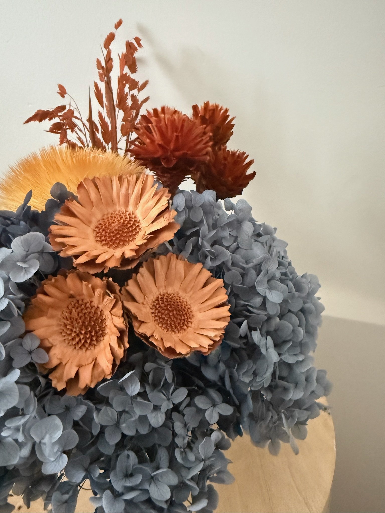 We use an elegant amalgamation of preserved, dried, and premium silk florals to create designs that are both timeless and enduring - crafted to be enjoyed for years to come.